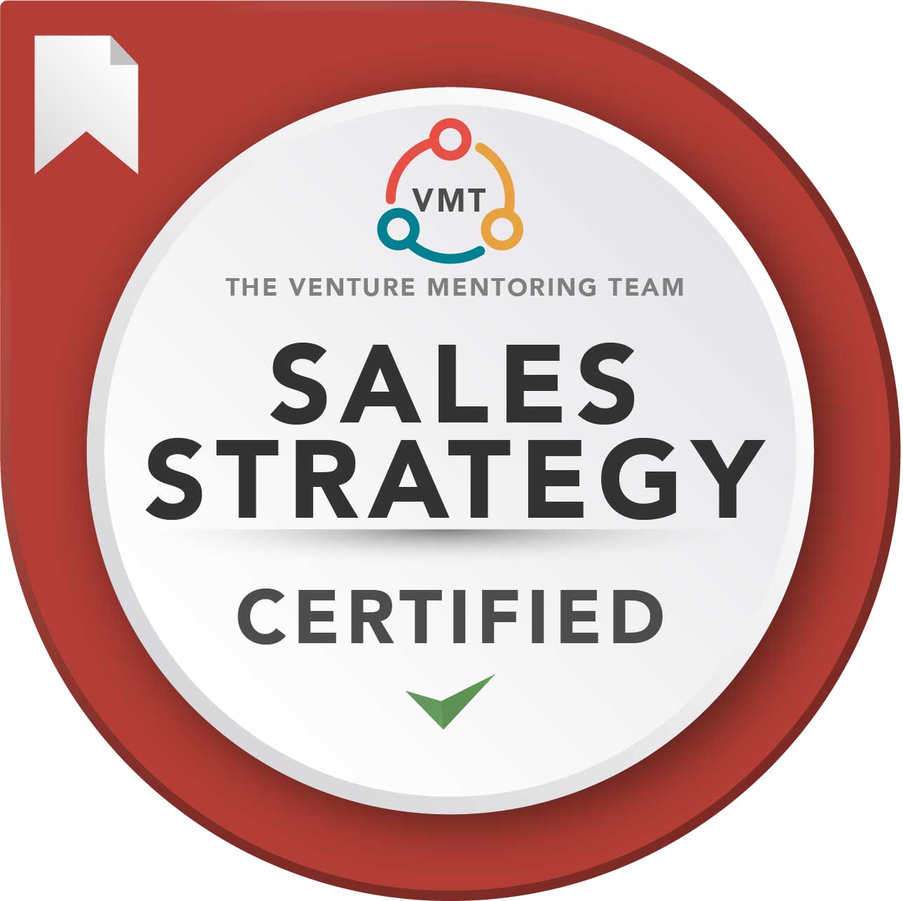 The Venture Mentoring Team (VMT) Sales Strategy badge is awarded for completing VMT’s Executing a Sales Strategy mentor training course.